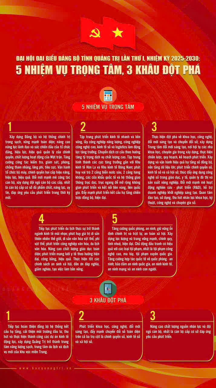 Đại hội đại biểu Đảng bộ tỉnh Quảng Trị lần thứ I, nhiệm kỳ 2025-2030: 5 nhiệm vụ trọng tâm, 3 khâu đột phá