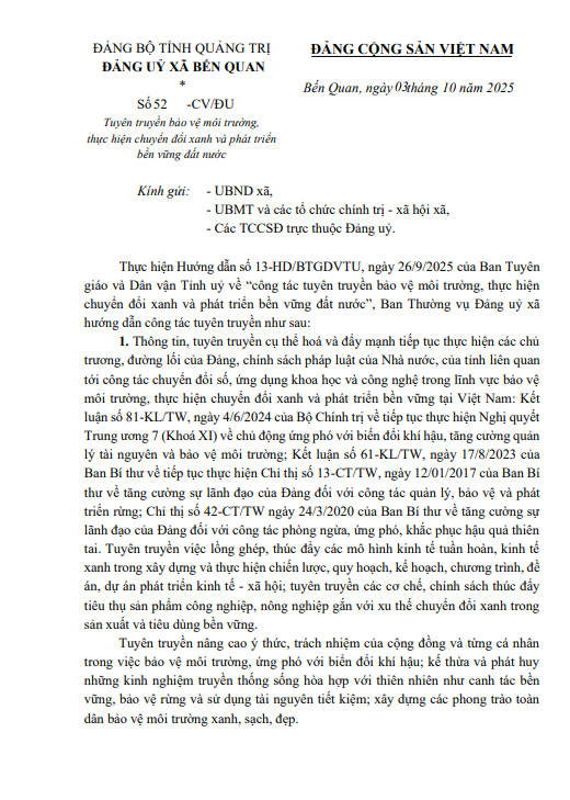 Công tuyên truyền trước Đại hội đại biểu tỉnh Quảng Trị Lần thứ I. nhiệm kỳ 2025 – 2030. (05/10/2025)