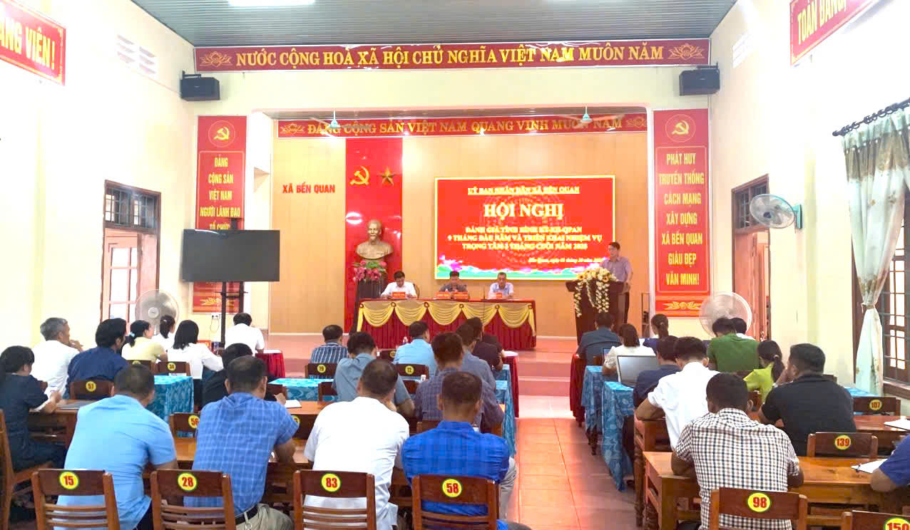 Chiều ngày 01/10/2025 UBND xã Bến Quan tổ chức Hội nghị " Đánh giá tình hình kinh tế - xã hội, Quốc phòng an ninh 09 tháng đầu năm 2025 và triển khai nhiệm vụ trọng tâm 03 tháng cuối năm 2025".