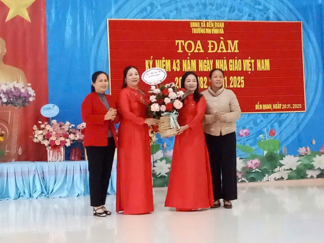 Ngày 20/11, không khí tại các trường học trên địa bàn xã trở nên rộn ràng hơn khi những bước chân của các đồng chí lãnh đạo Đảng ủy, HĐND, UBND, UBMTTQVN xã Bến Quan đã ghé thăm 9 điểm trường. Không chỉ là chuyến đi thường niên, năm nay, hành trình tri ân mang theo nhiều thông điệp mới về sự đồng hành và sẻ chia cùng đội ngũ giáo viên.