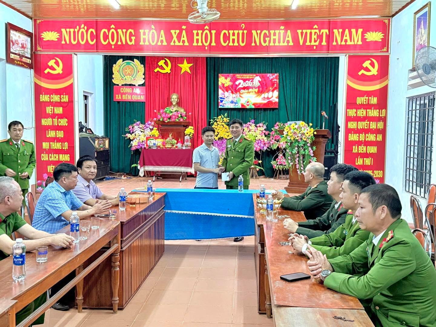 Chiều 30 Tết, lãnh đạo xã Bến Quan đã tổ chức đoàn đến thăm hỏi, động viên và chúc Tết các lực lượng làm nhiệm vụ trực Tết trên địa bàn, gồm Công an xã, Ban Chỉ huy Quân sự xã và Trạm Y tế xã.