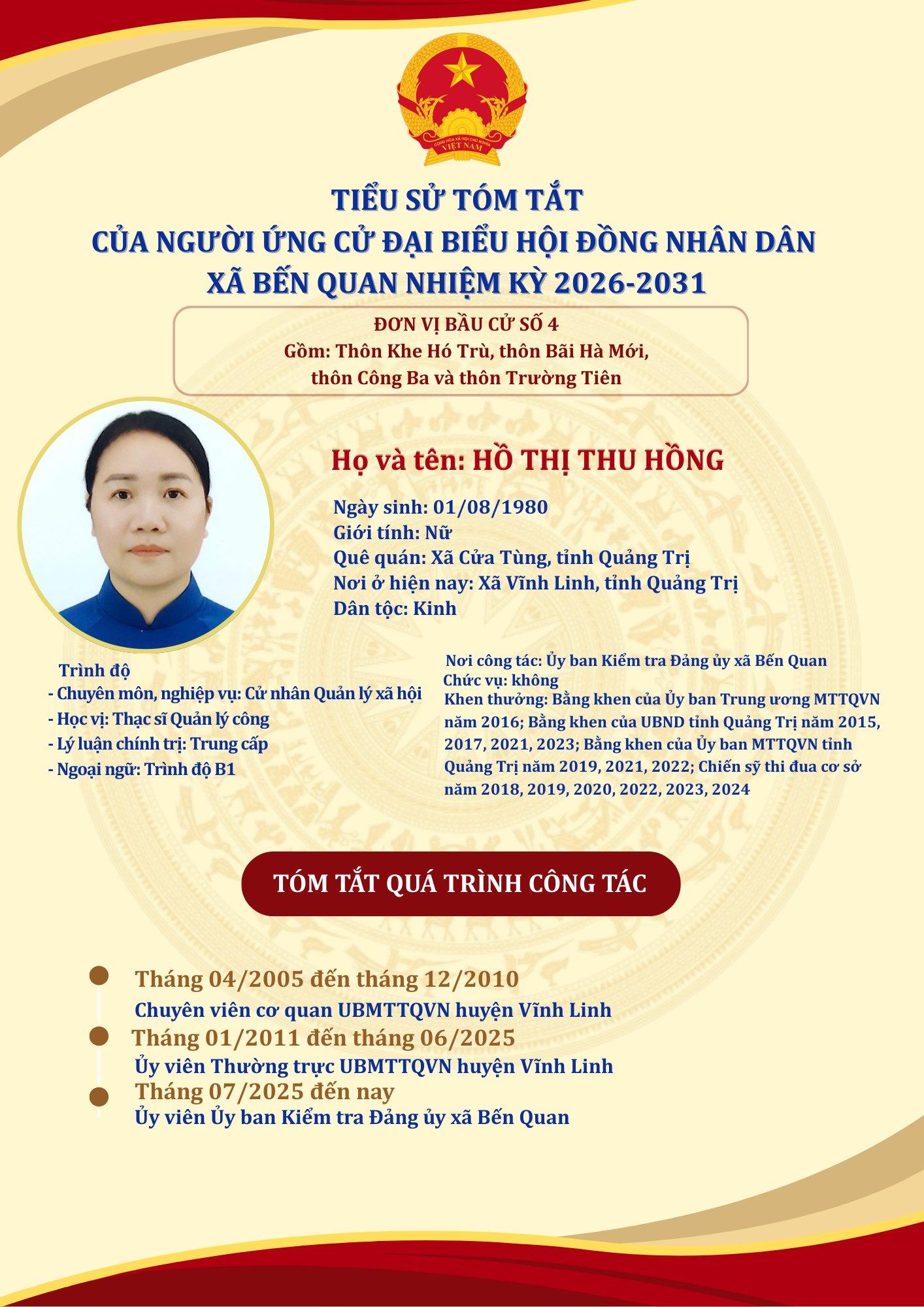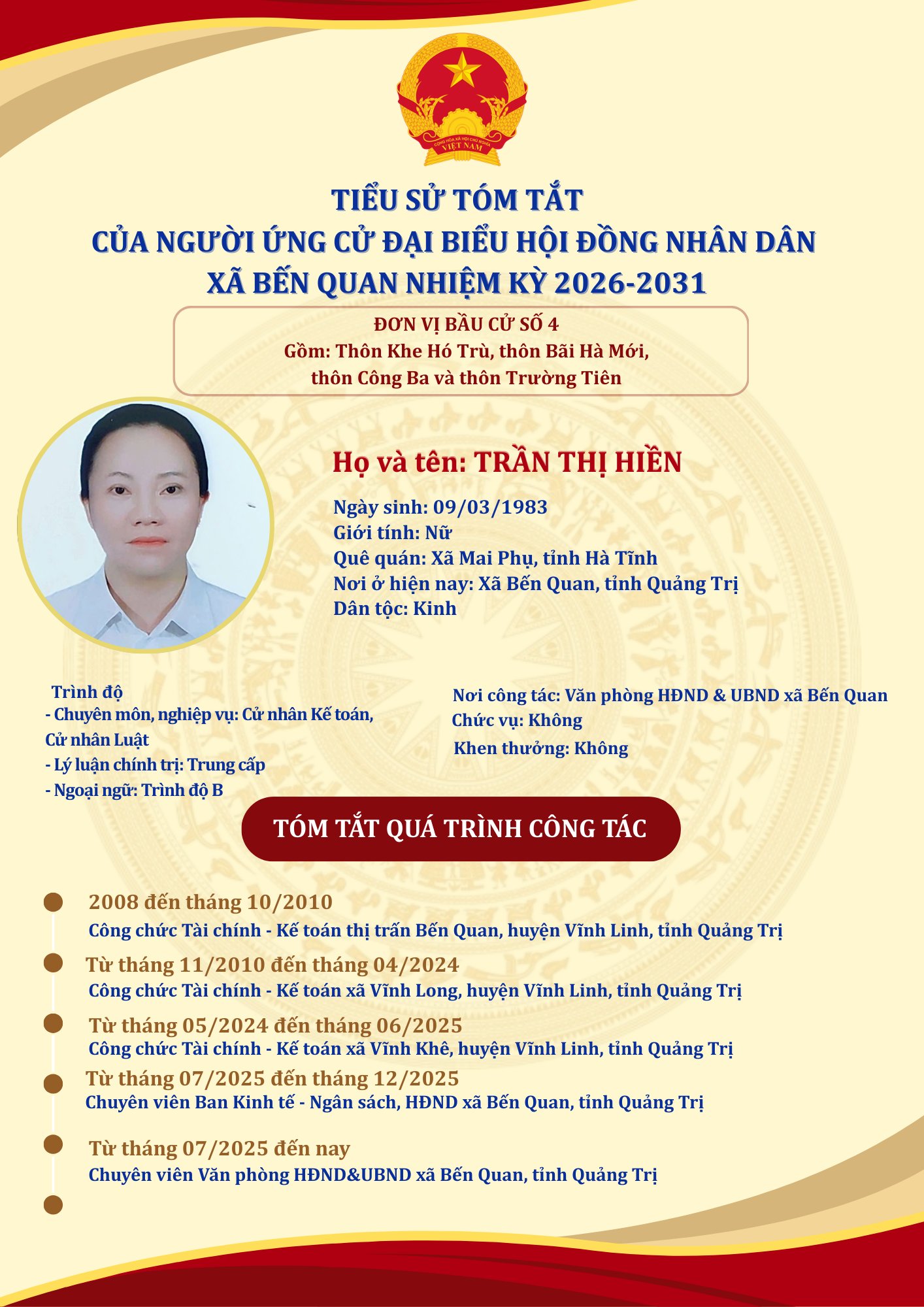 TIỂU SỬ TÓM TẮT CỦA NGƯỜI ỨNG CỬ ĐẠI BIỂU HỘI ĐỒNG NHÂN DÂN XÃ BẾN QUAN NHIỆM KỲ 2026-2031 (03/03/2026)