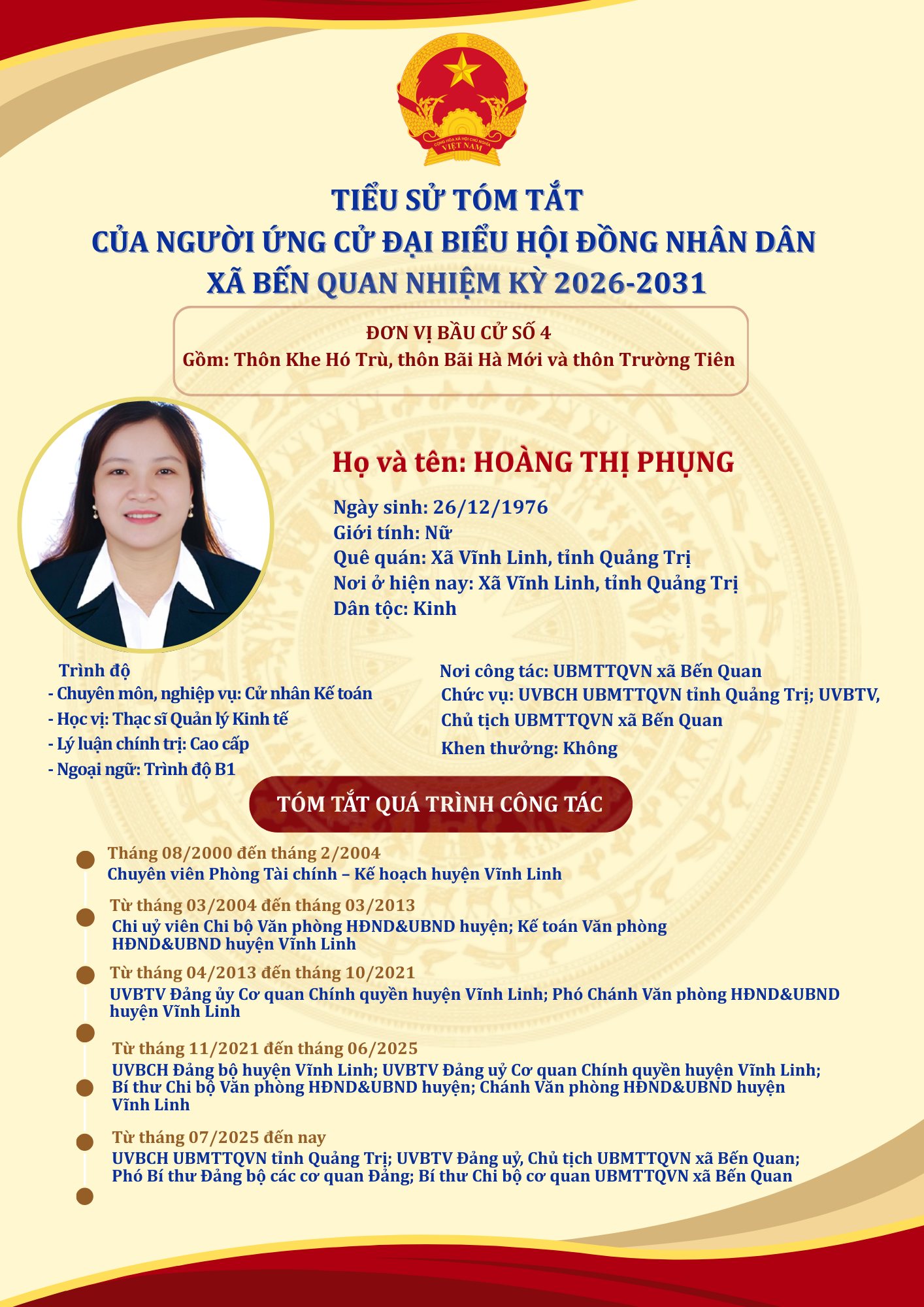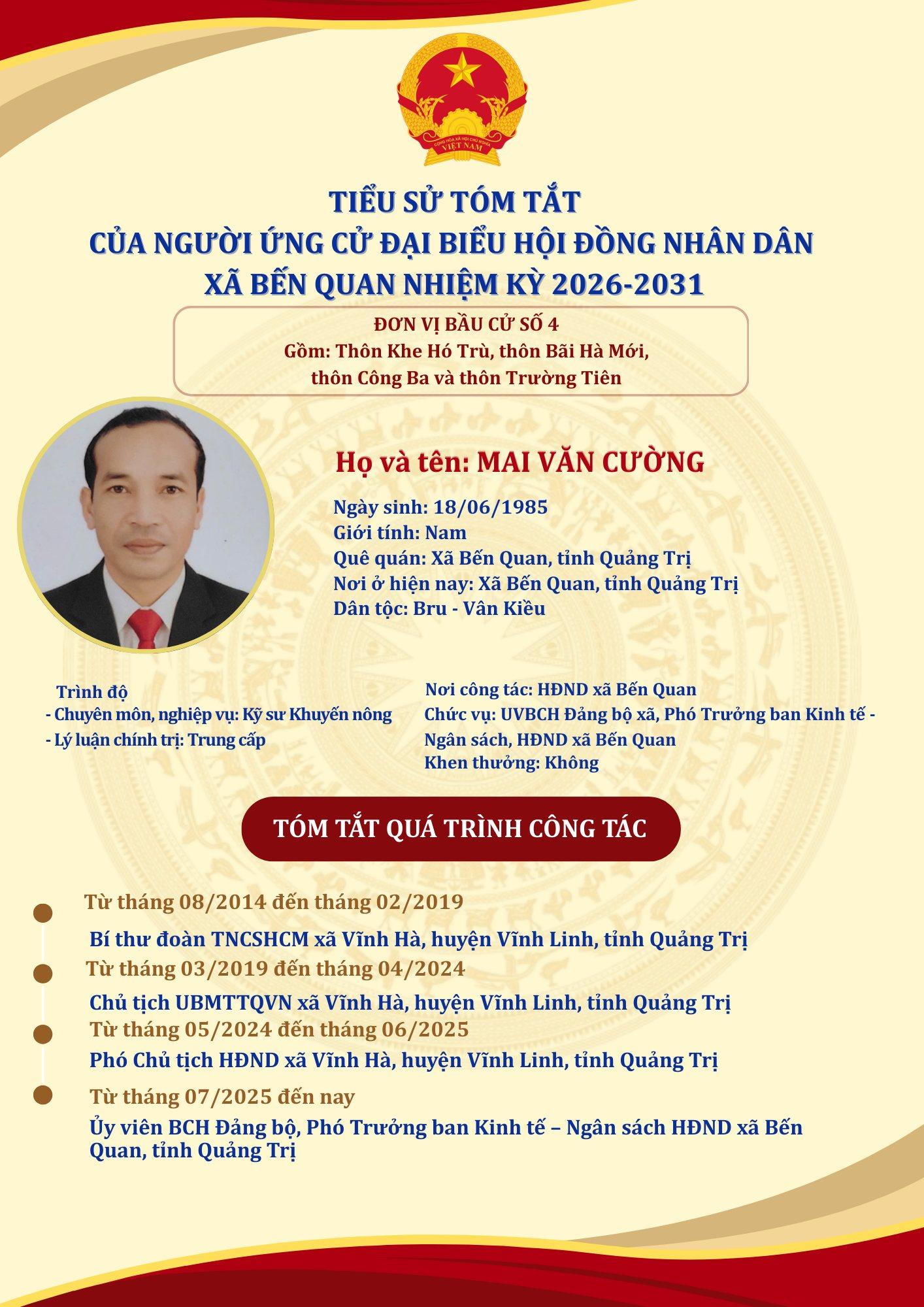 TIỂU SỬ TÓM TẮT CỦA NGƯỜI ỨNG CỬ ĐẠI BIỂU HỘI ĐỒNG NHÂN DÂN XÃ BẾN QUAN NHIỆM KỲ 2026-2031