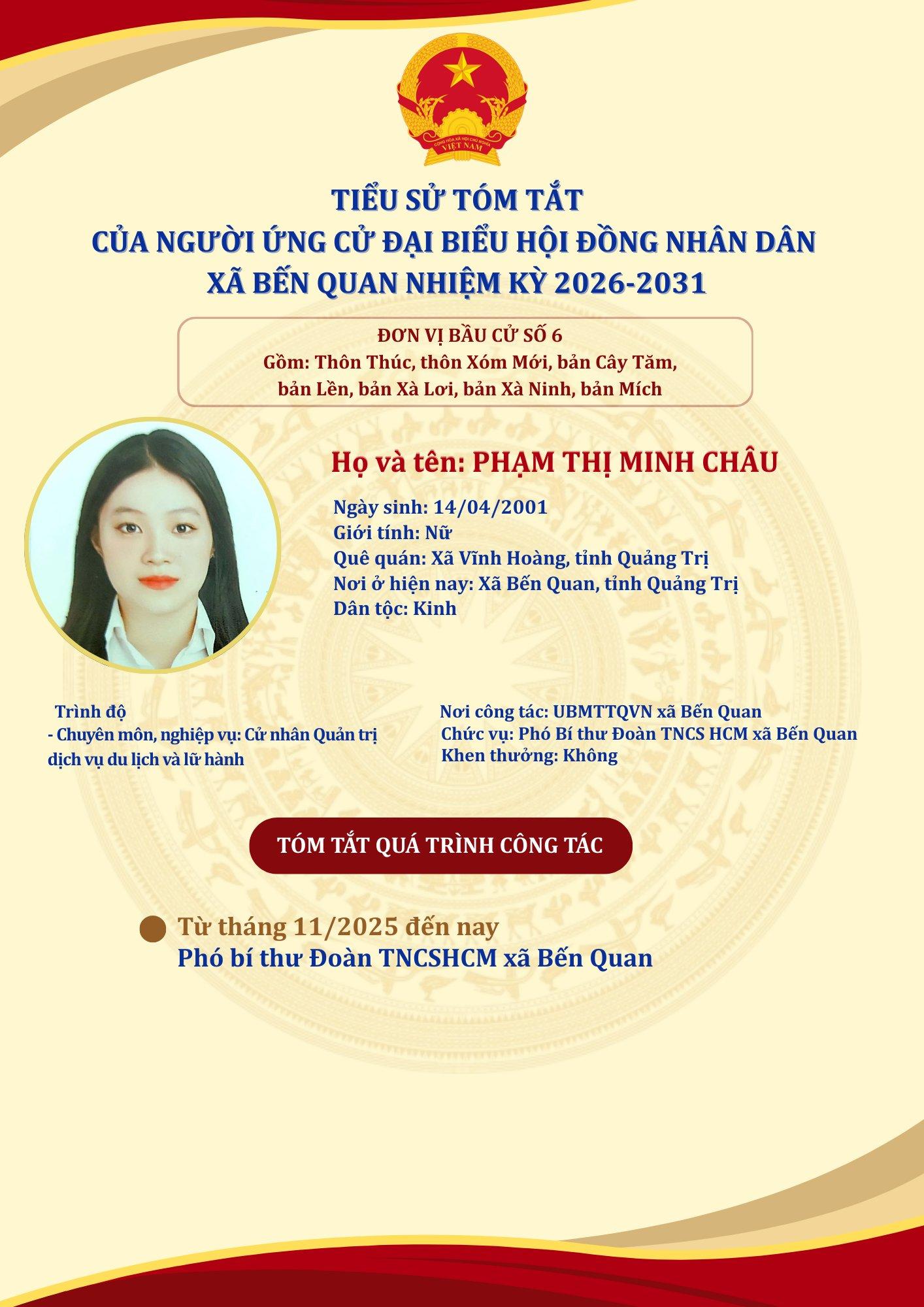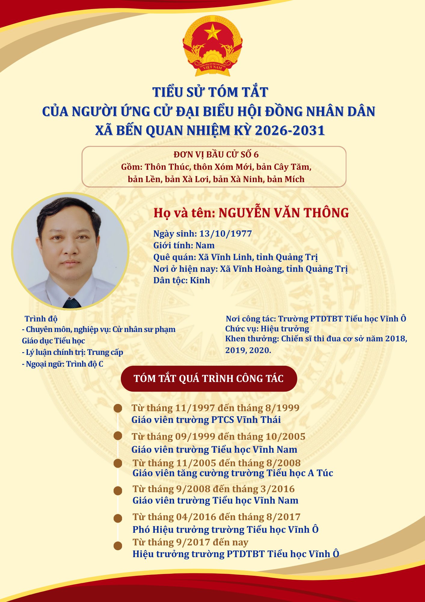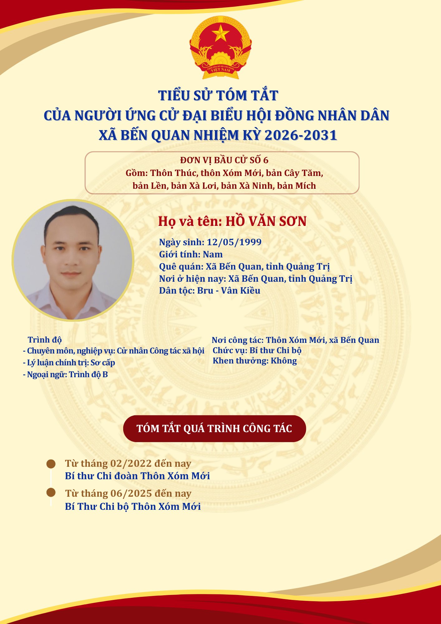 TIỂU SỬ TÓM TẮT CỦA NGƯỜI ỨNG CỬ ĐẠI BIỂU HỘI ĐỒNG NHÂN DÂN XÃ BẾN QUAN NHIỆM KỲ 2026-2031 (03/03/2026)