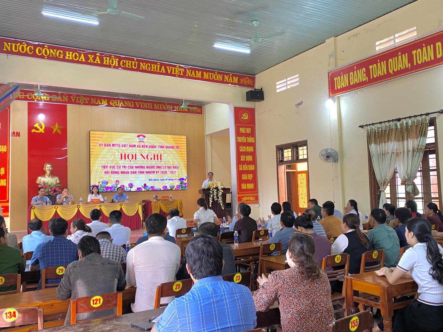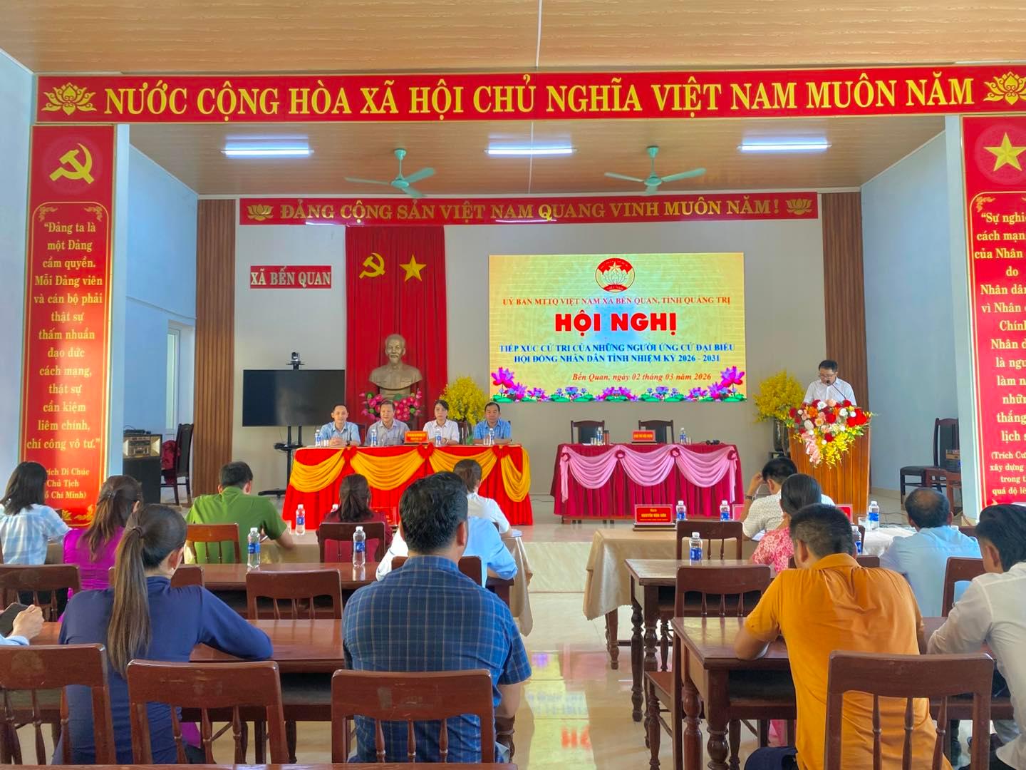 Thực hiện Kế hoạch số 33/KH-MTTQ-BTT ngày 13/02/2026 và Thông báo số 66/TB-MTTQ-BTT ngày 26/02/2026 của Ban Thường trực Ủy ban Mặt trận Tổ quốc Việt Nam tỉnh Quảng Trị về việc tổ chức tiếp xúc giữa cử tri với những người ứng cử đại biểu HĐND tỉnh nhiệm kỳ 2026–2031 (đơn vị bầu cử số 9), ngày 2/3, Ban Thường trực UBMTTQVN xã Bến Quan đã tổ chức Hội nghị tiếp xúc cử tri để các ứng cử viên thực hiện vận động bầu cử theo quy định.