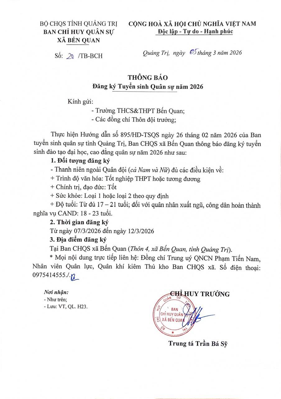 🎉🎉🎉THÔNG BÁO ĐĂNG KÝ TUYỂN SINH QUÂN SỰ NĂM 2026