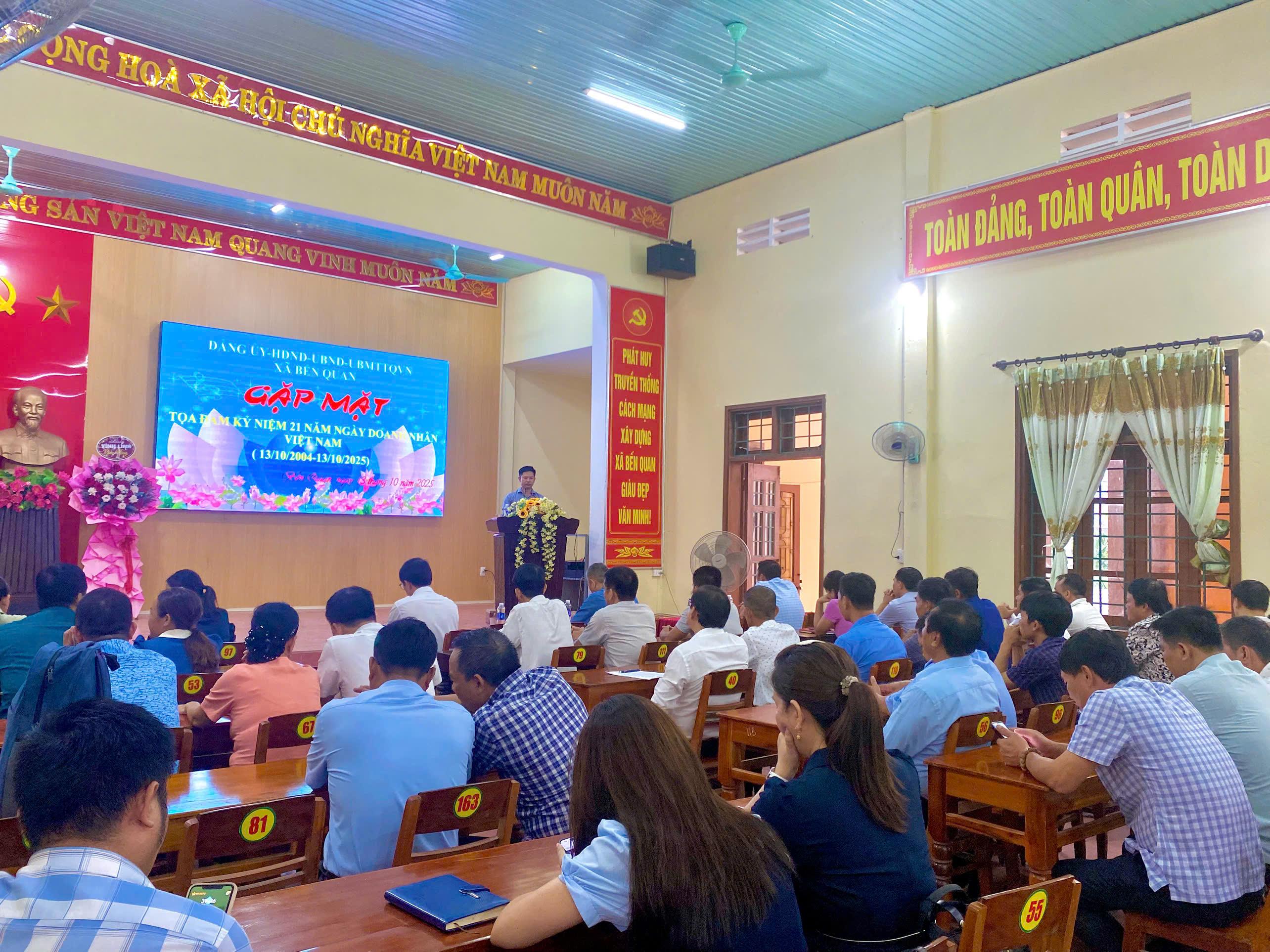 Nhân dịp Ngày Doanh nhân Việt Nam (13/10), chiều nay, Đảng ủy – HĐND – UBND – UBMTTQVN xã Bến Quan đã tổ chức buổi gặp mặt thân mật nhằm tri ân và tôn vinh những đóng góp to lớn của cộng đồng doanh nghiệp, doanh nhân đối với sự phát triển kinh tế - xã hội của địa phương.