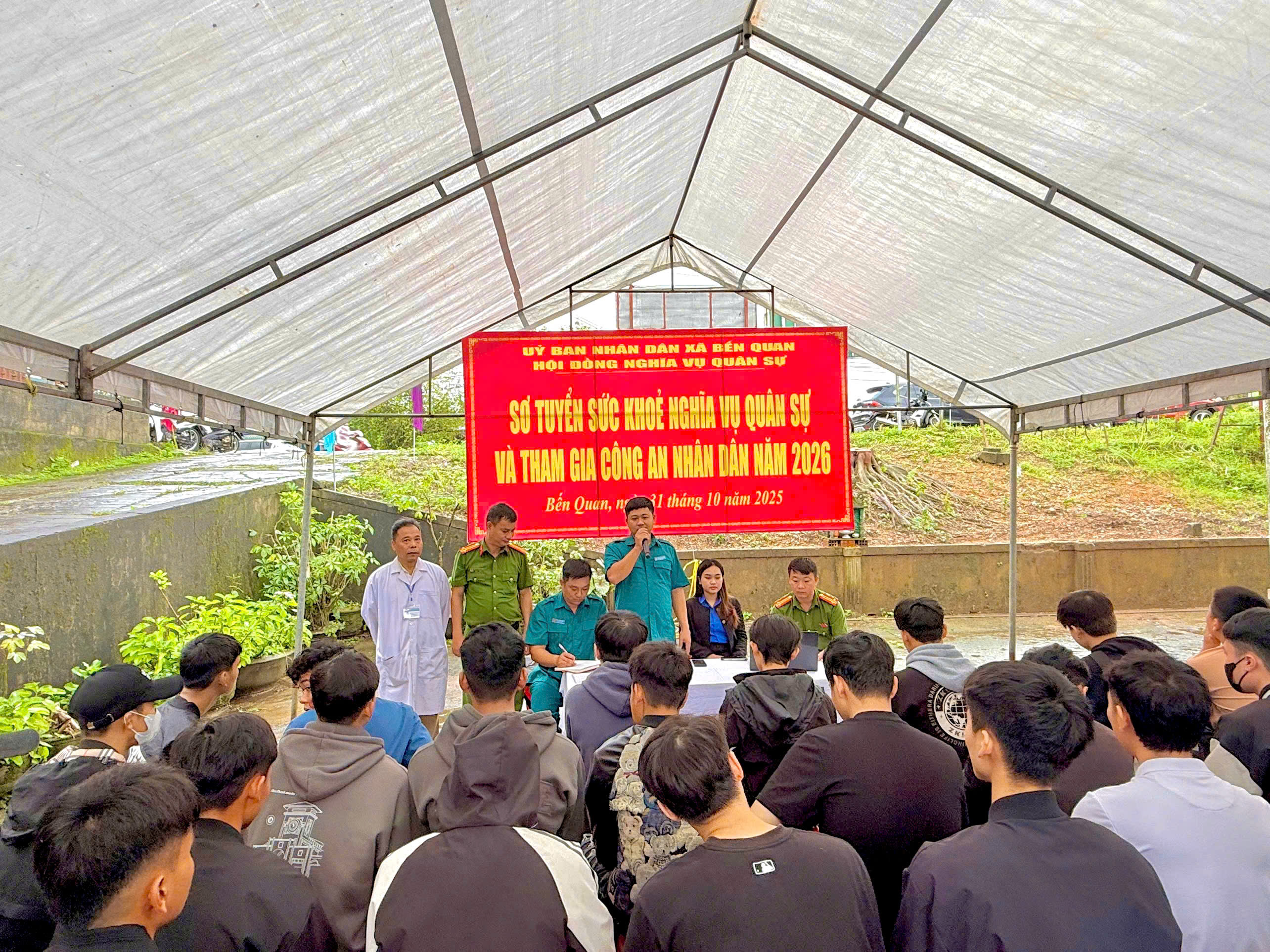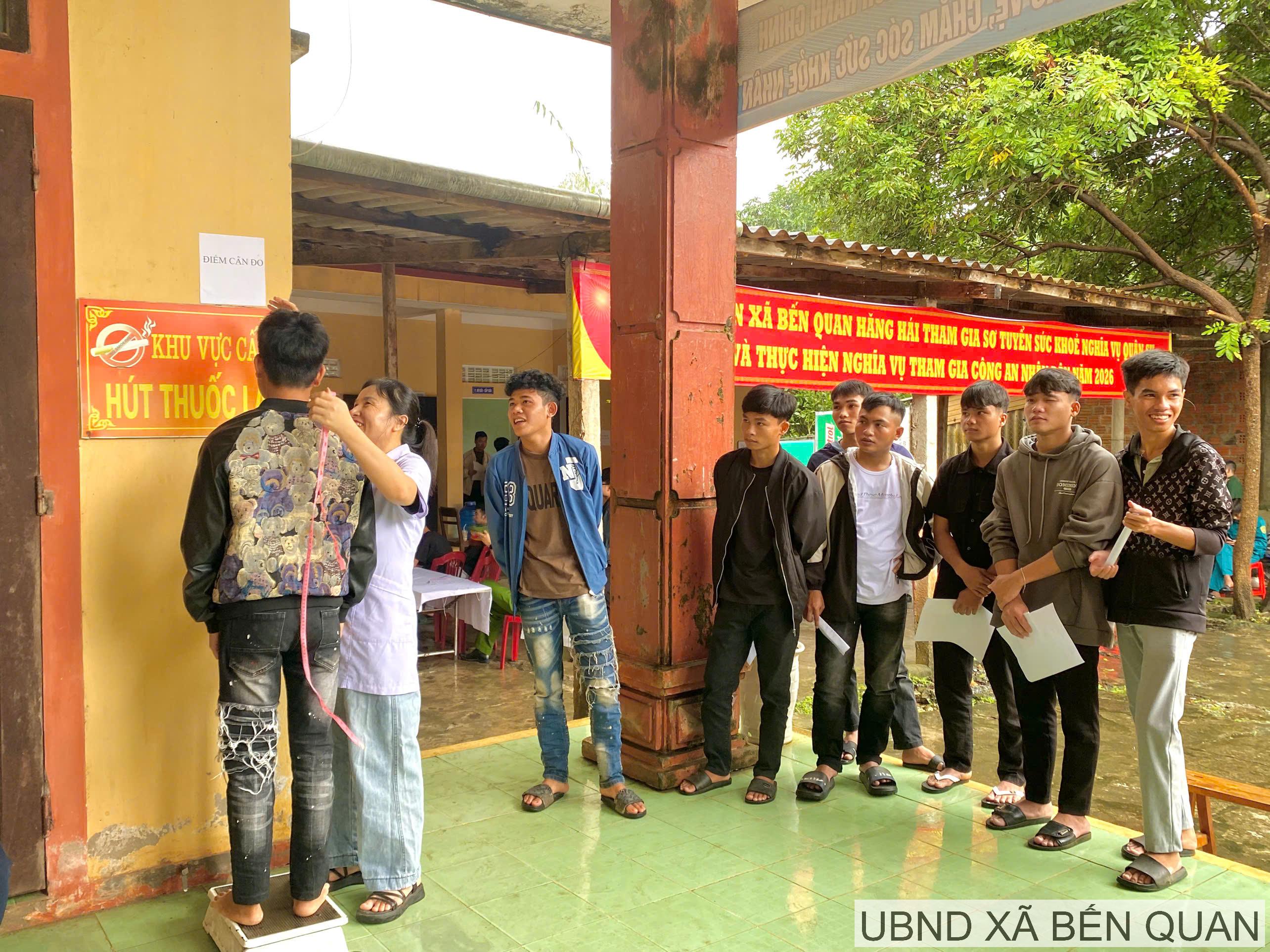 Trong những ngày cuối tháng 10, dù thời tiết không thuận lợi, mưa lớn kéo dài, nhưng không khí tại điểm Trạm Y tế Bến Quan khám sơ tuyển nghĩa vụ Quân sự và nghĩa vụ Công an nhân dân năm 2026 vẫn rộn ràng, nghiêm túc và đầy khí thế.