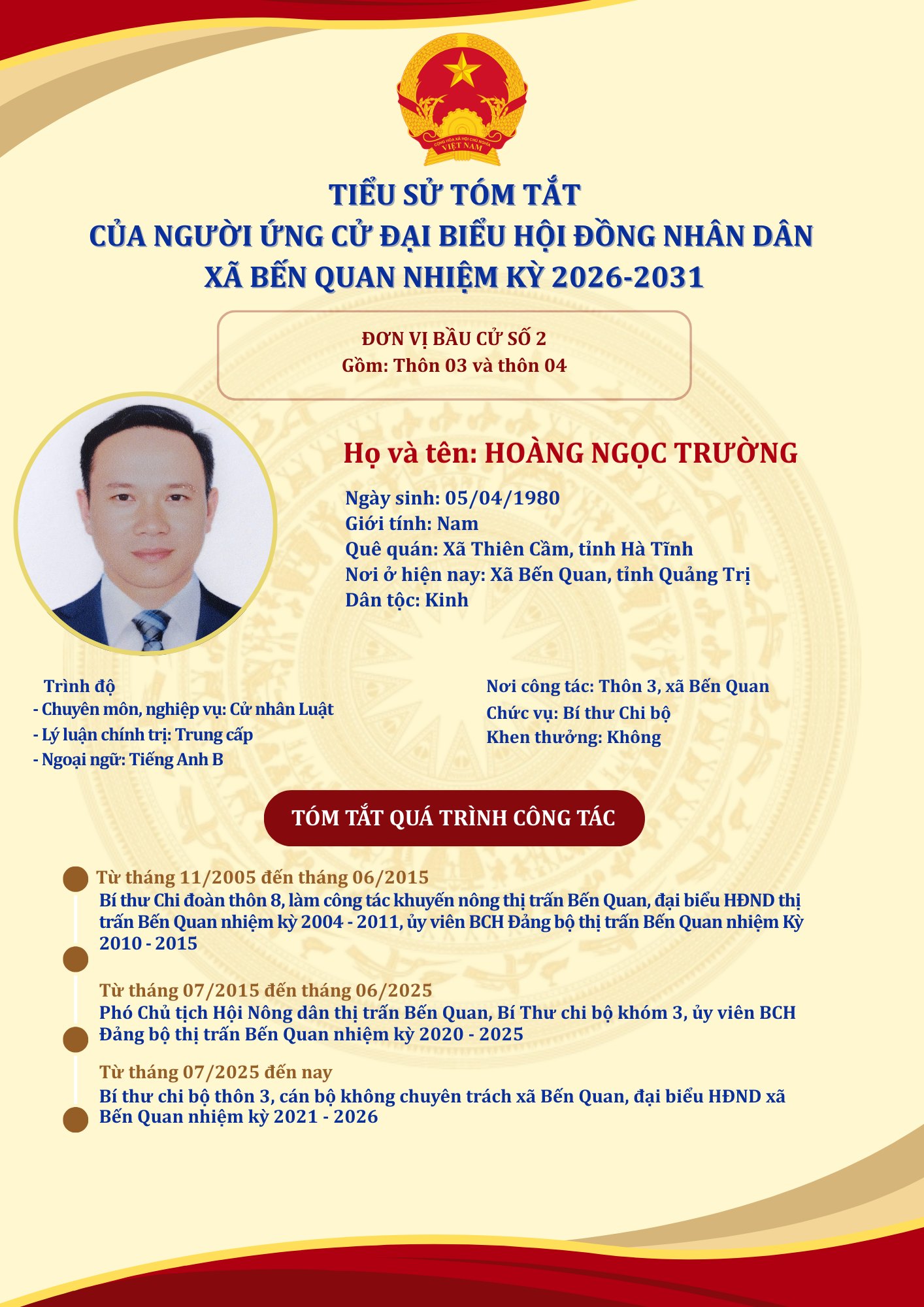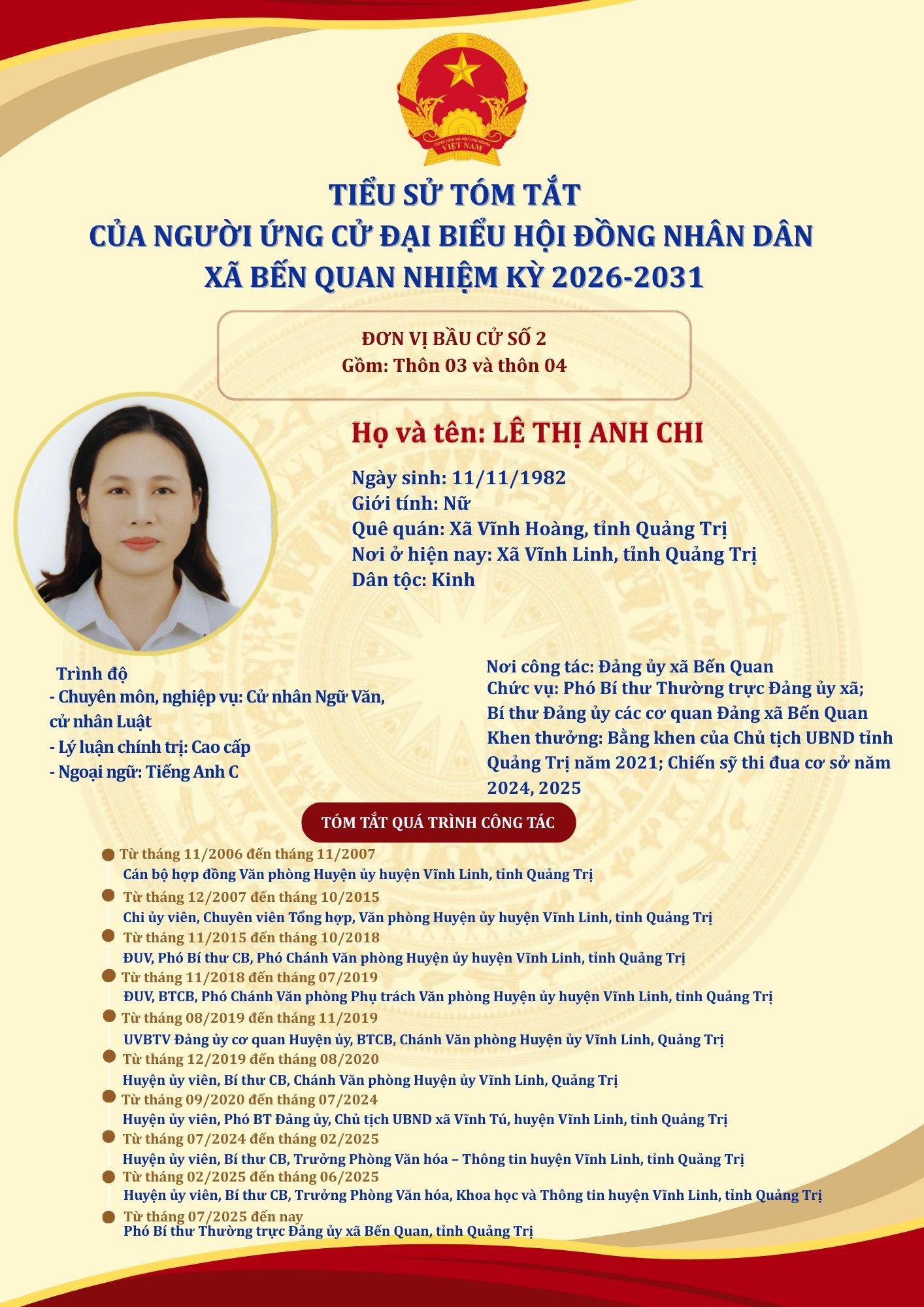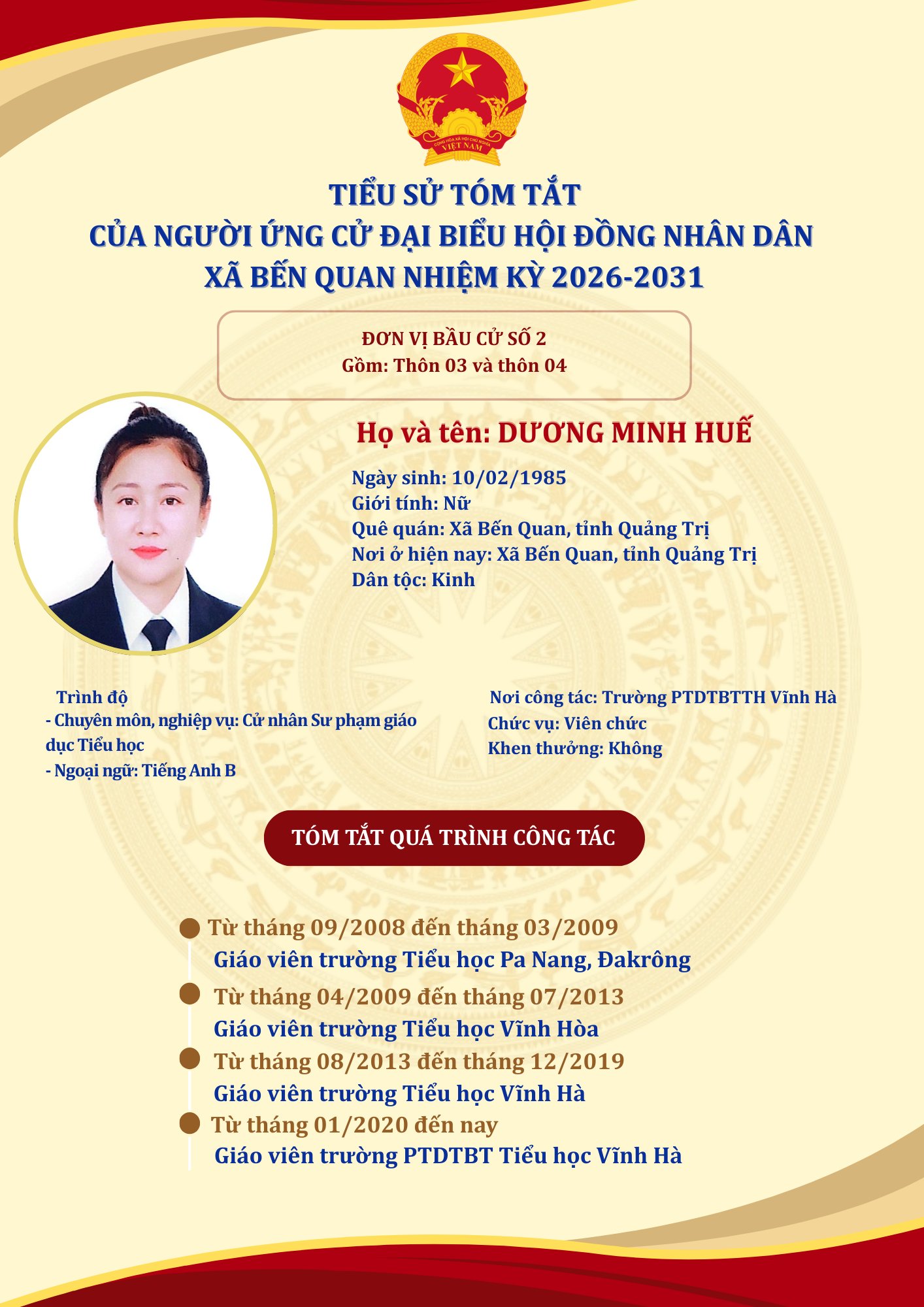 TIỂU SỬ TÓM TẮT CỦA NGƯỜI ỨNG CỬ ĐẠI BIỂU HỘI ĐỒNG NHÂN DÂN XÃ BẾN QUAN NHIỆM KỲ 2026-2031 (03/03/2026)