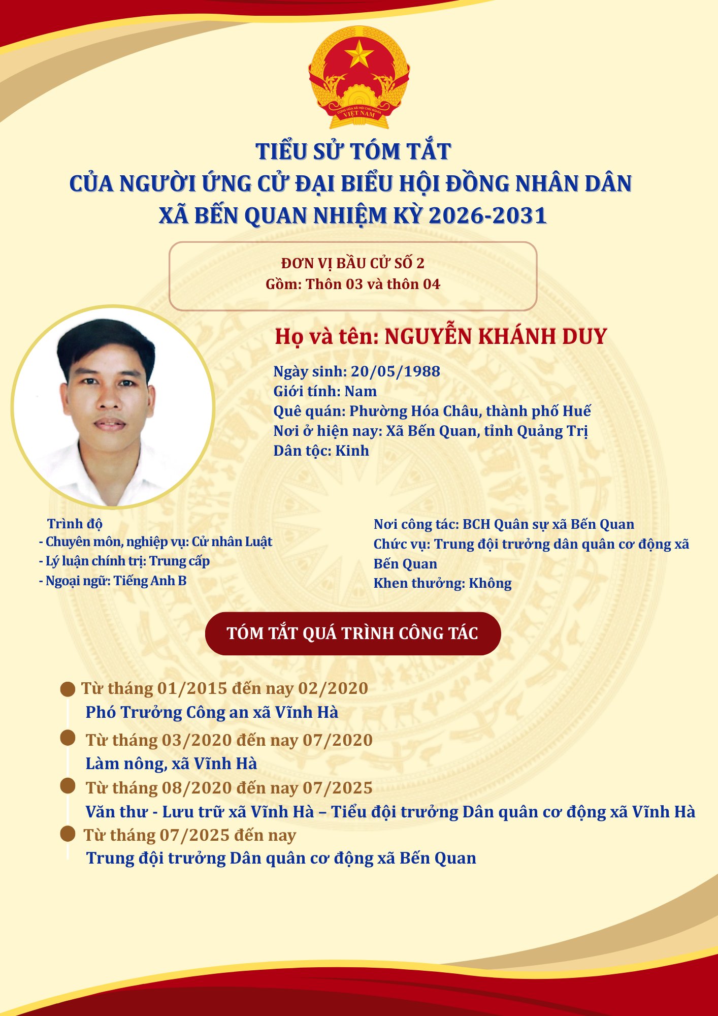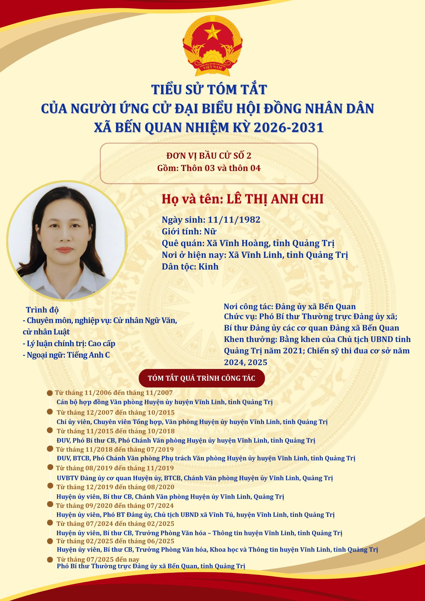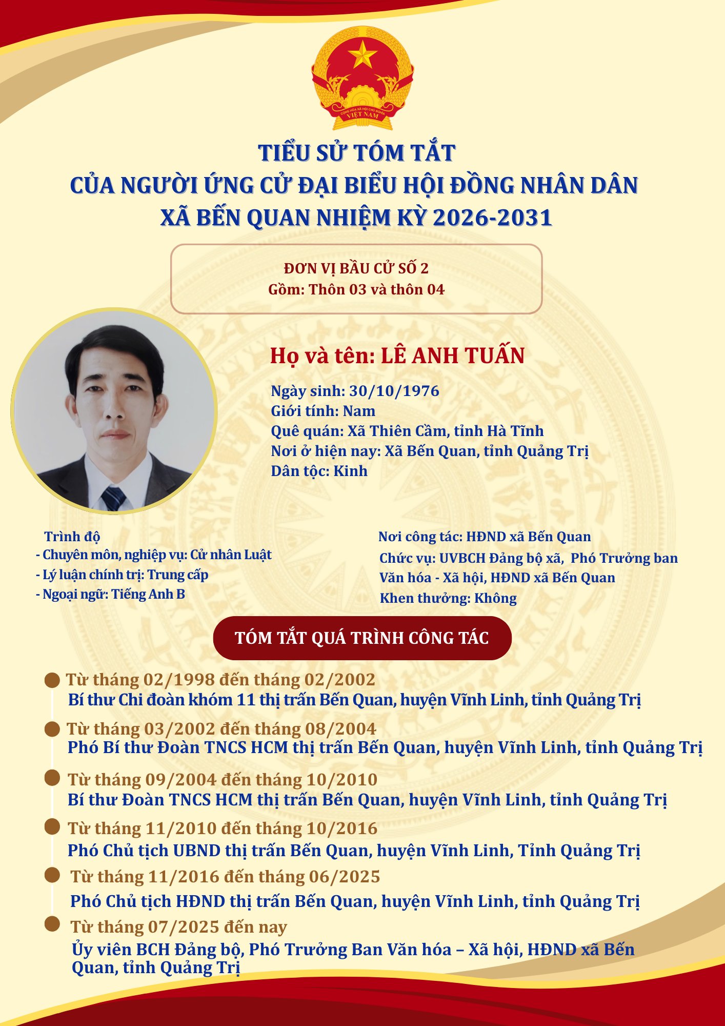 TIỂU SỬ TÓM TẮT CỦA NGƯỜI ỨNG CỬ ĐẠI BIỂU HỘI ĐỒNG NHÂN DÂN XÃ BẾN QUAN NHIỆM KỲ 2026-2031