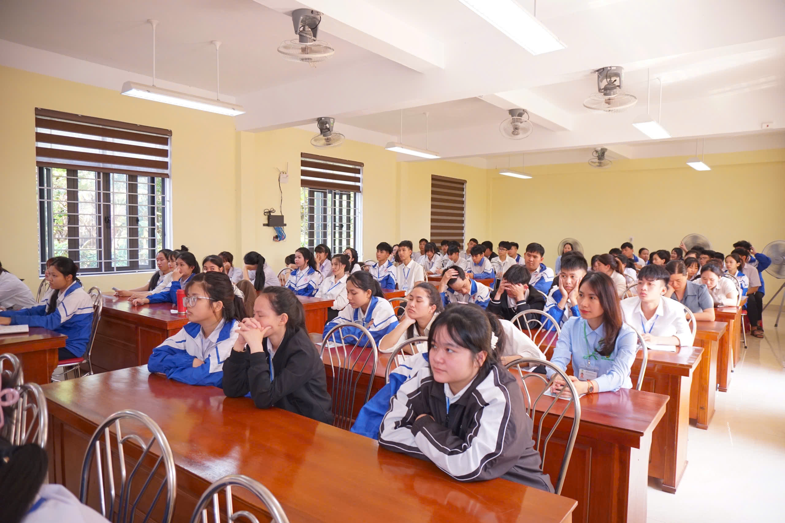 Bên cạnh đó, học sinh đã được cung cấp thông tin chi tiết về phương thức tuyển sinh năm 2026, các tổ hợp xét tuyển, điều kiện đăng ký cũng như những lưu ý quan trọng khi lựa chọn ngành nghề. Không khí buổi tư vấn diễn ra sôi nổi với nhiều câu hỏi được các em học sinh đặt ra xoay quanh cơ hội việc làm, mức thu nhập, môi trường học tập và khả năng phát triển bản thân trong tương lai.